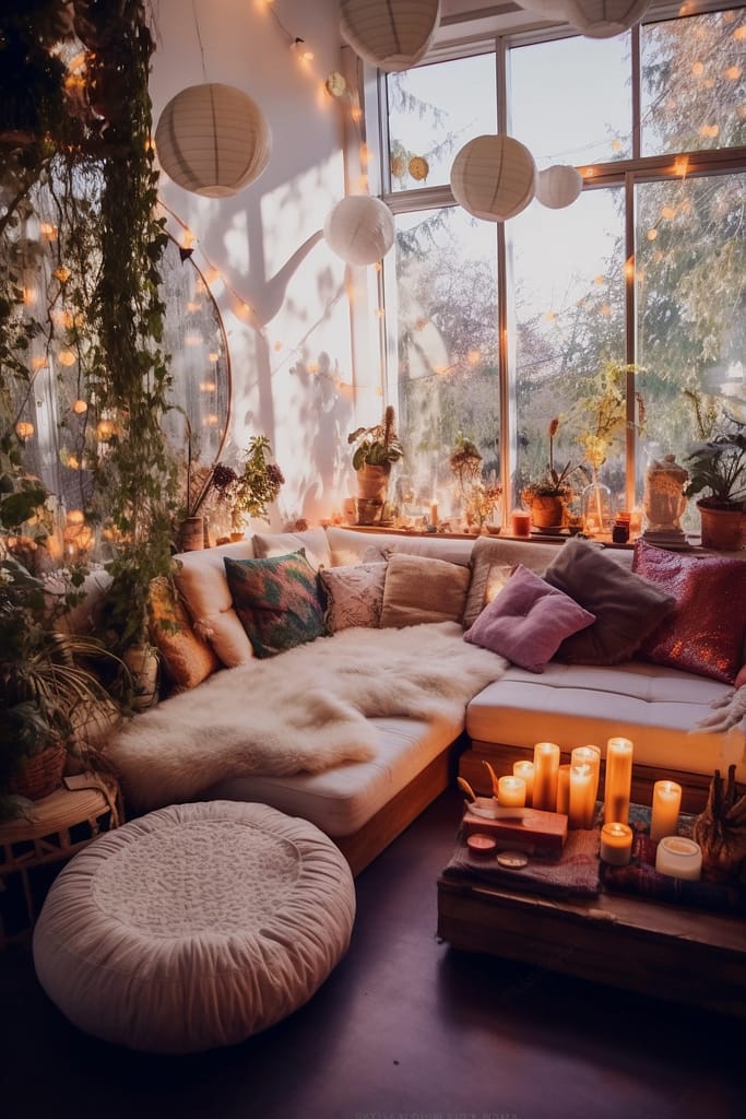 Lighting plays a crucial role in setting the mood for a Bohemian home. Opt for warm, soft lighting to create a cozy and inviting atmosphere. String lights, fairy lights, and lanterns are excellent choices. Additionally, incorporate candles and vintage-inspired lamps to add a touch of romance and warmth.