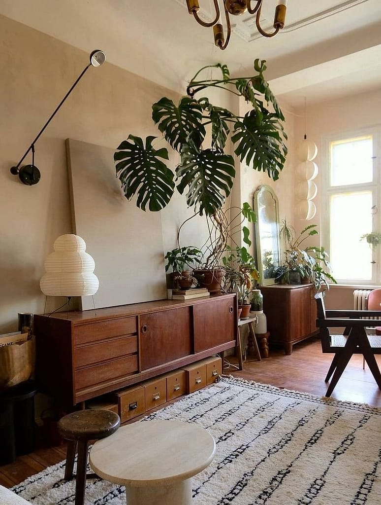 Plants are an absolute must in any Bohemian space. They bring life, color, and a sense of tranquility to your home. Fill your space with a variety of plants, from tall leafy palms to small succulents. Hanging plants and macramé plant holders are also a great way to add greenery without taking up floor space. Natural elements like wooden furniture, stone accents, and woven baskets further ground your decor and connect it to the earth.
