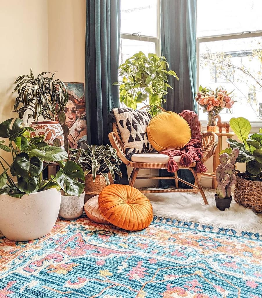 One of the joys of Bohemian decor is the use of layered textiles. Imagine plush rugs, cozy blankets, and a sea of throw pillows, all in a delightful mix of patterns and textures. Don’t be afraid to mix and match different fabrics—the more eclectic, the better! Think Persian rugs, kilim pillows, and macramé wall hangings to add that rich, tactile feel to your space.